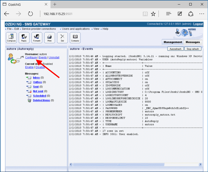 You can use the graphical user interface of Ozeki NG - SMS Gateway to install and configure any user.