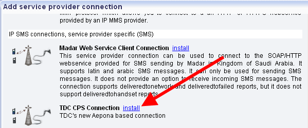 As the service provider connections page suggests you need to install one or more service provider connections in Ozeki NG SMS Gateway to be able to send out SMS messages over the Internet. One of these service provider connections is TDC CPS Connection. Please follow this page to learn its installation and configuration process.