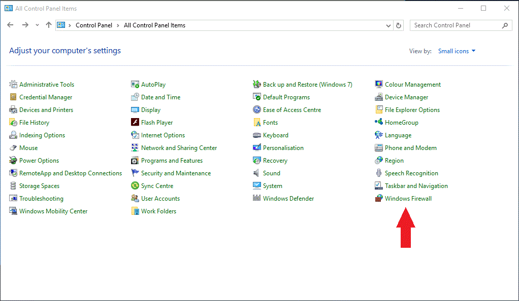 Ozeki firewall settings for Windows 10